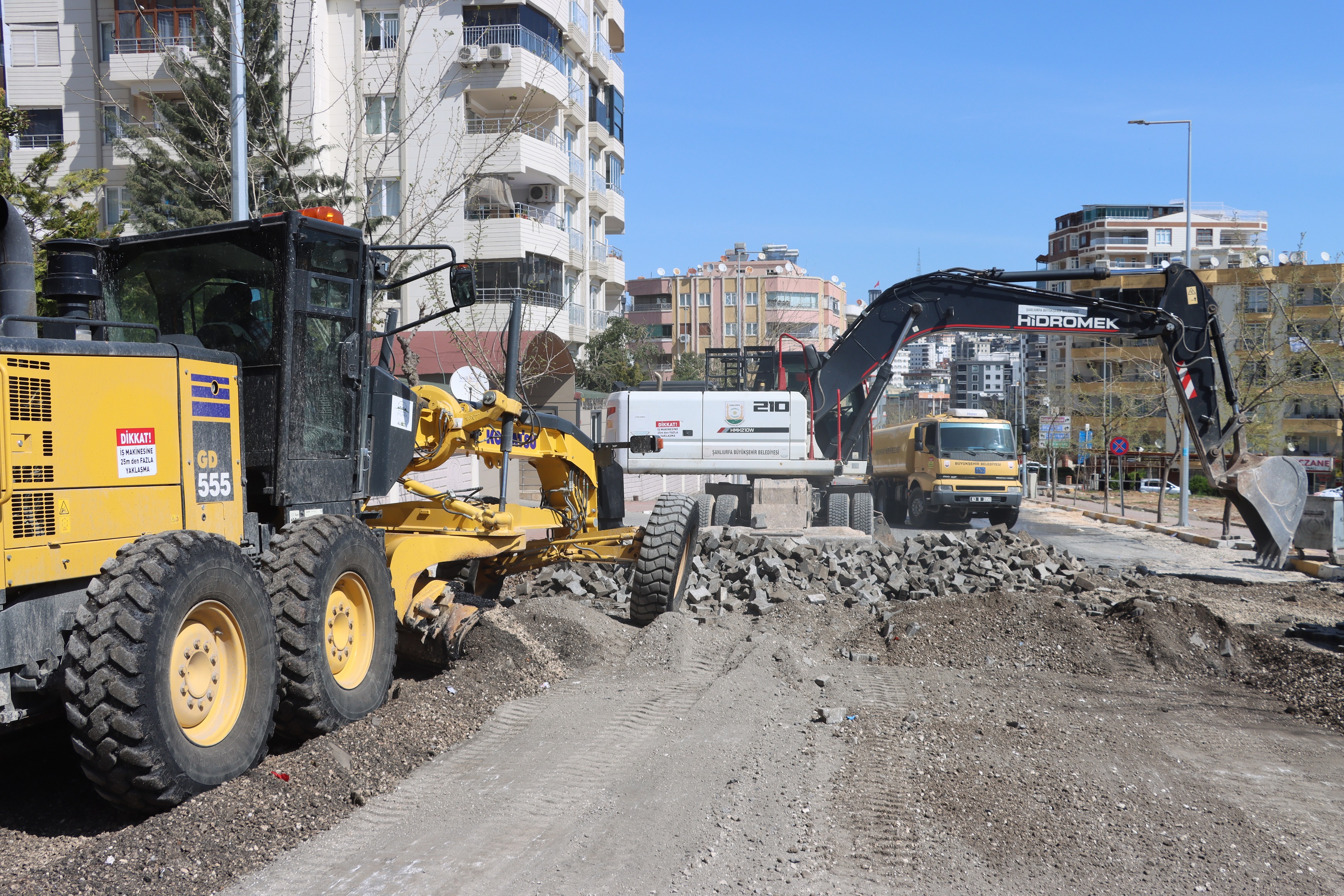 Şanlıurfa Büyükşehir Belediyesi Fen İşleri Daire Başkanlığı ekipleri, kent genelindeki yol bakım, onarım ve yenileme çalışmalarını aralıksız sürdürüyor. Bu kapsamda ekiplerin yeni adresi, Karaköprü ilçesine bağlı Karşıyaka Mahallesi'nde yer alan Mustafa Direkli Caddesi oldu.
