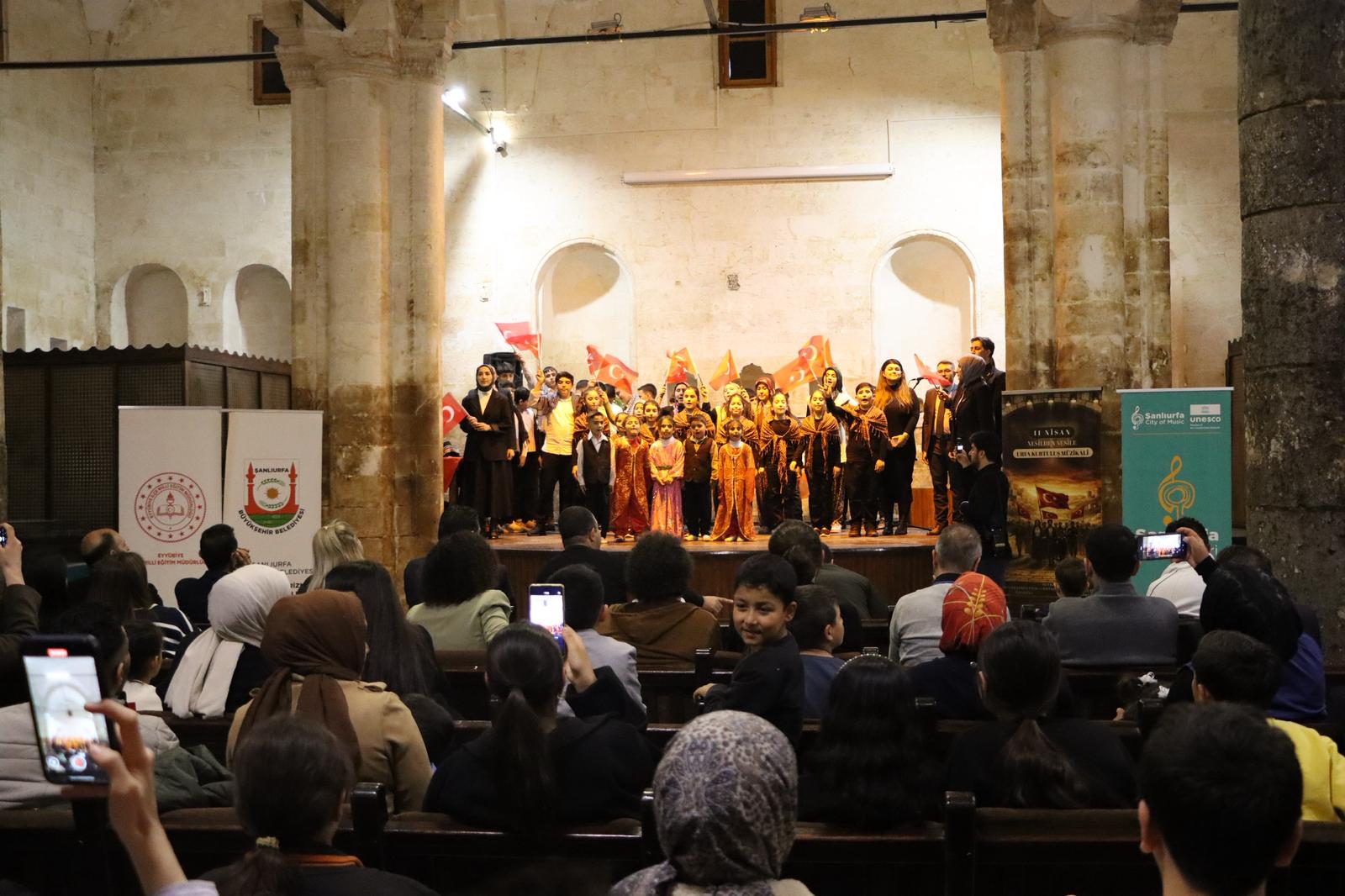 11 Nisan Şanlıurfa’nın kurtuluşunun 106. yıl dönümünde sahneye taşınan “Nesilden Nesile Şanlıurfa’nın Kurtuluşu Müzikali”, izleyenlere adeta tarihsel bir yolculuk yaşattı. Şanlıurfa Büyükşehir Belediyesi’nin destekleriyle sahnelenen ve öğrencilerin performansıyla büyüleyen gösteri, 11 Nisan ruhunu duygu, gurur ve coşkuyla yeniden canlandırdı.