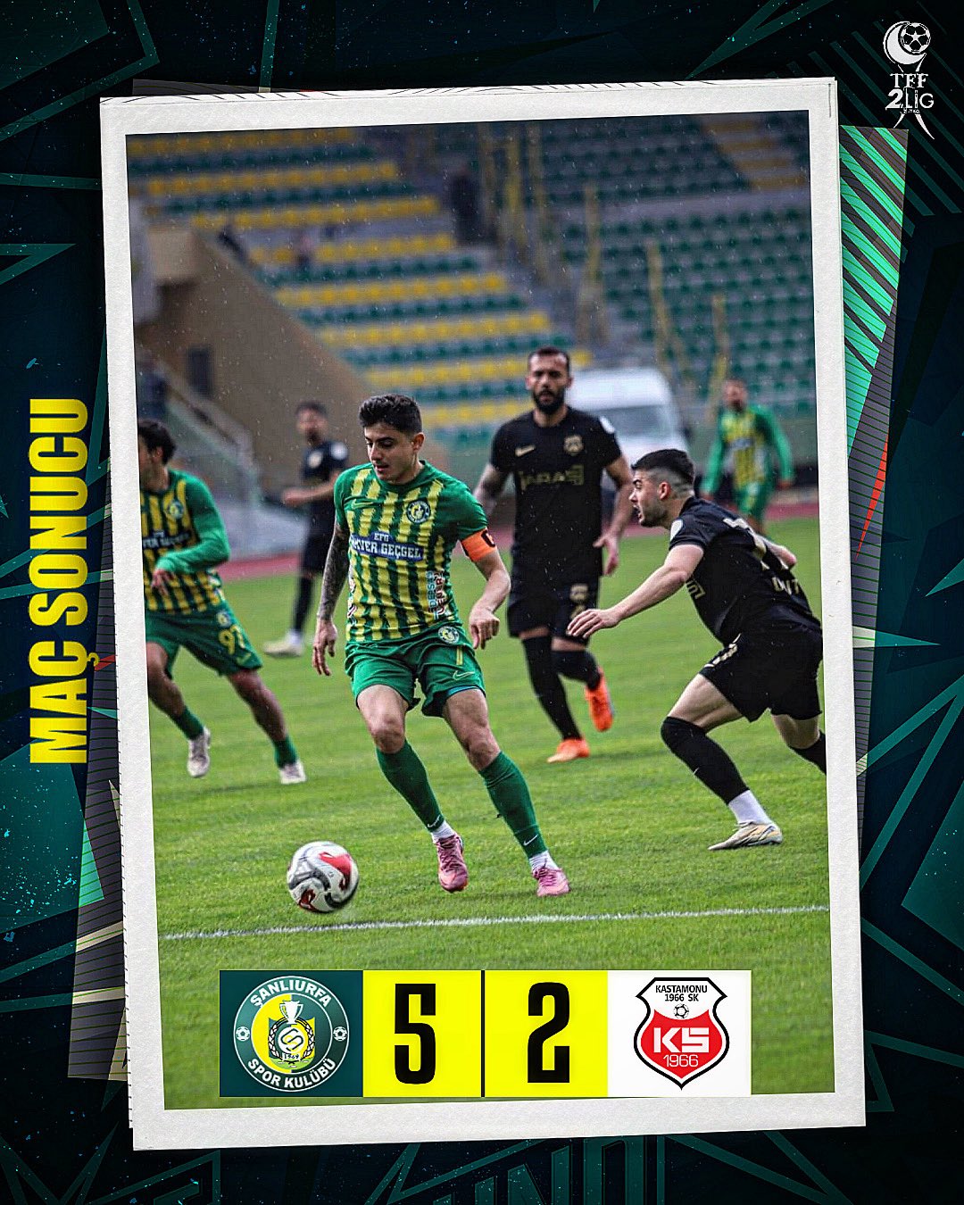 dakikada günün başarılı isimlerinden Berk Yıldız bir kez daha fileleri havalandırarak skoru 5-1'e taşıdı. Kastamonuspor adına maçın skorunu tayin eden gol ise 75. dakikada Kazım Can Kahya'dan geldi ve 90 dakika Şanlıurfaspor'un 5-2'lik üstünlüğü ile sona erdi.